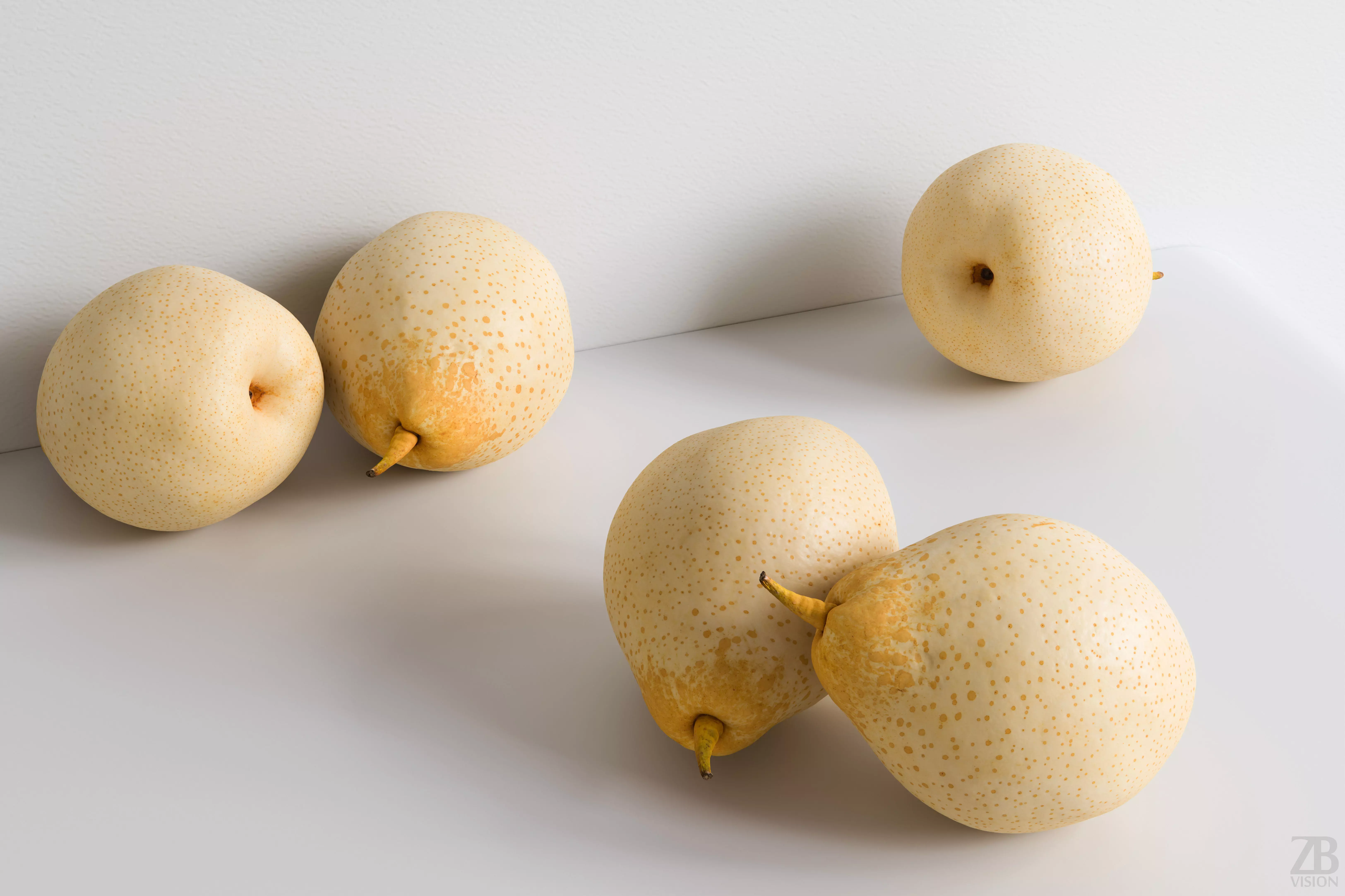This is a 3d model of a chinese white pear, aka ya pear. It was scanned and prepared for photorealistic renderings, close-ups, stills and animation. The pear model is ready to be inserted in your scene out of the box.