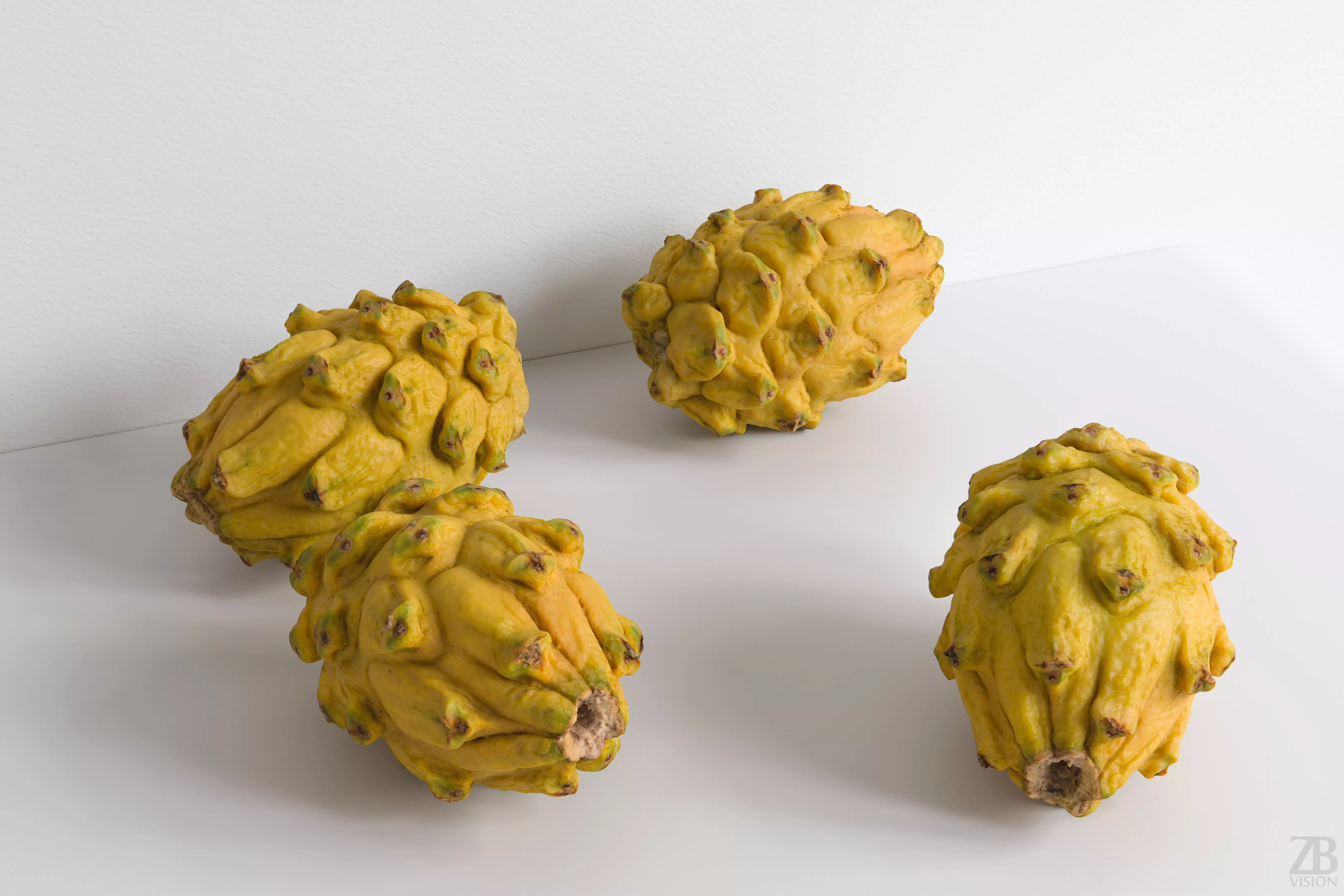This is a 3d model of a yellow pallora aka pitaya aka dragon fruit. It was scanned and prepared for photorealistic renderings, close-ups, stills and animation. The pitaya model is ready to be inserted in your scene out of the box.