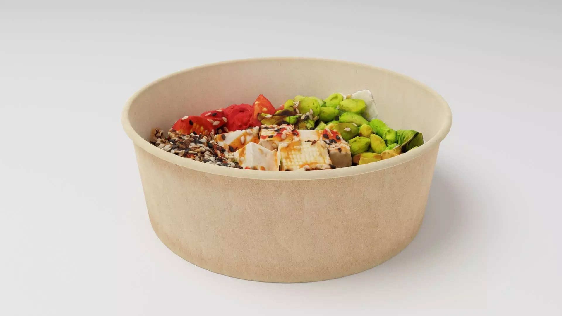 Poke bowl lunch with eggs cheese avocado tomatoes 3D model