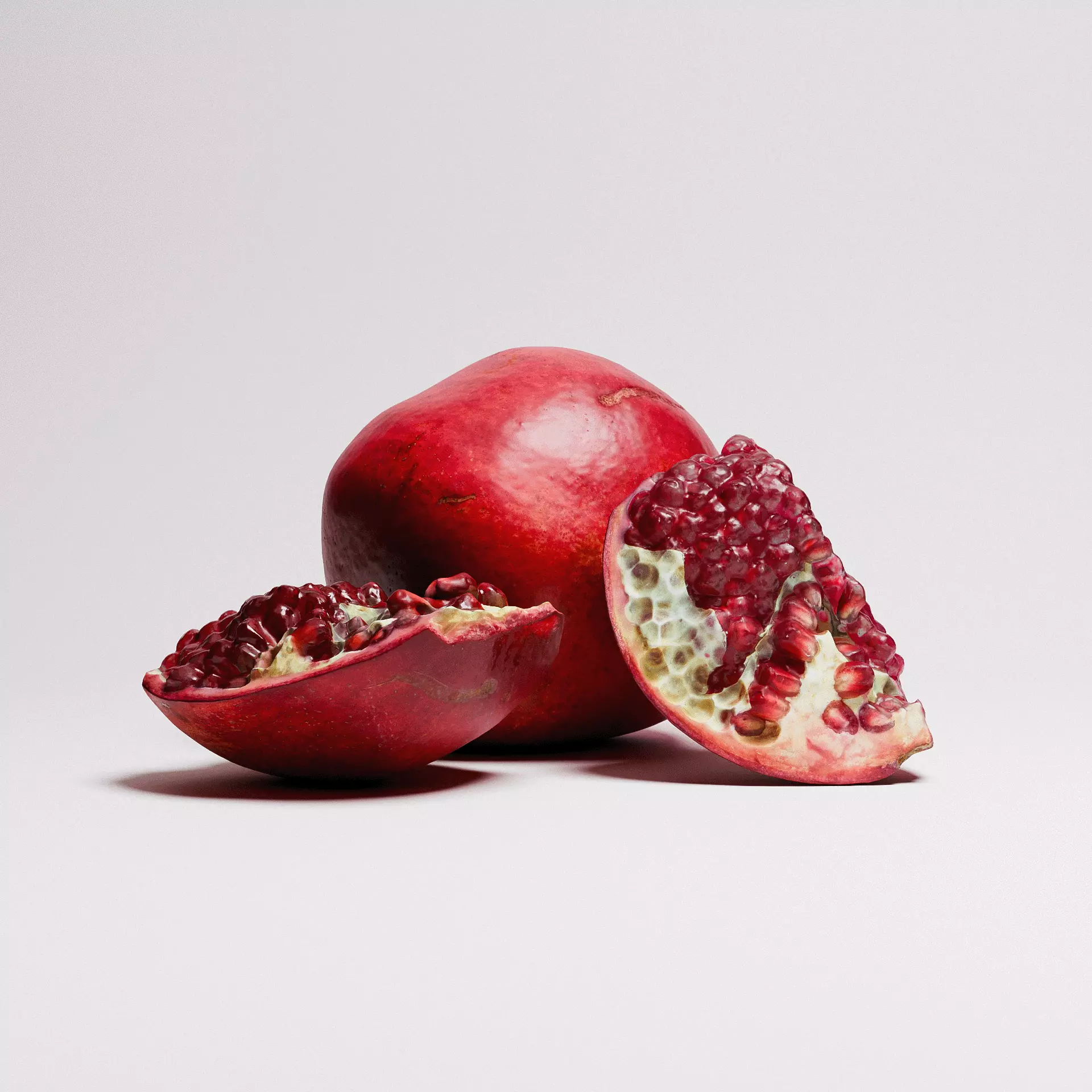 This set showcases lifelike pomegranates with rich red tones, realistic textures, and subtle imperfections. Each fruit captures natural details, making them ideal for use in high-quality visualizations or product renders.