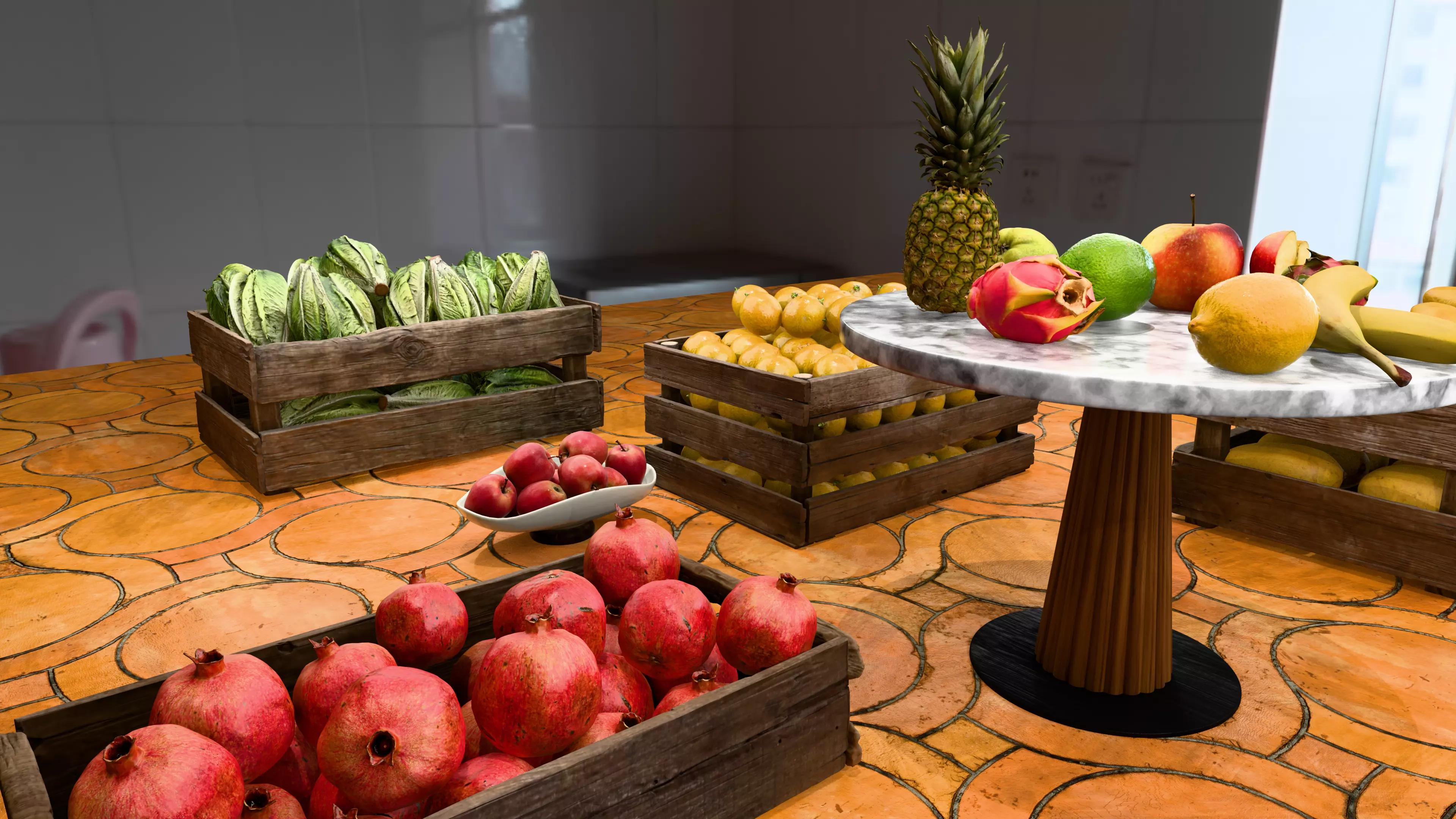 Includes formats: FBX, OBJ, STL, USD, BLEND and more — ready for all engines and workflows.This high-quality 3D fruit market pack features a collection of realistic fruits arranged in detailed wooden crates and displayed on a premium marble table with a ceramic floor base. Each model is optimized with PBR textures and clean UV mapping, making it perfect for use in product visualizations, food commercials, game development, VR/AR experiences, and architectural renderings.The models are game-ready and support real-time engines such as Unity and Unreal Engine. Whether you're designing a grocery scene, restaurant interior, or photorealistic food environment, this pack delivers superior realism and modular organization. All assets are low-poly friendly and exported in multiple formats for maximum compatibility across different pipelines and platforms.Contents:8 types of realistic fruit assets (apple, banana, mango, orange, lemon, lime, pear, dragon fruit, pineapple, bitter melon)Wooden crates with natural texturesMarble round tableSeamless ceramic tiled ground4K PBR texture maps: Base Color, Normal, Roughness, AOExported in: .fbx, .obj, .blend, .stl, .usdc, .gltf, .abc, .dae