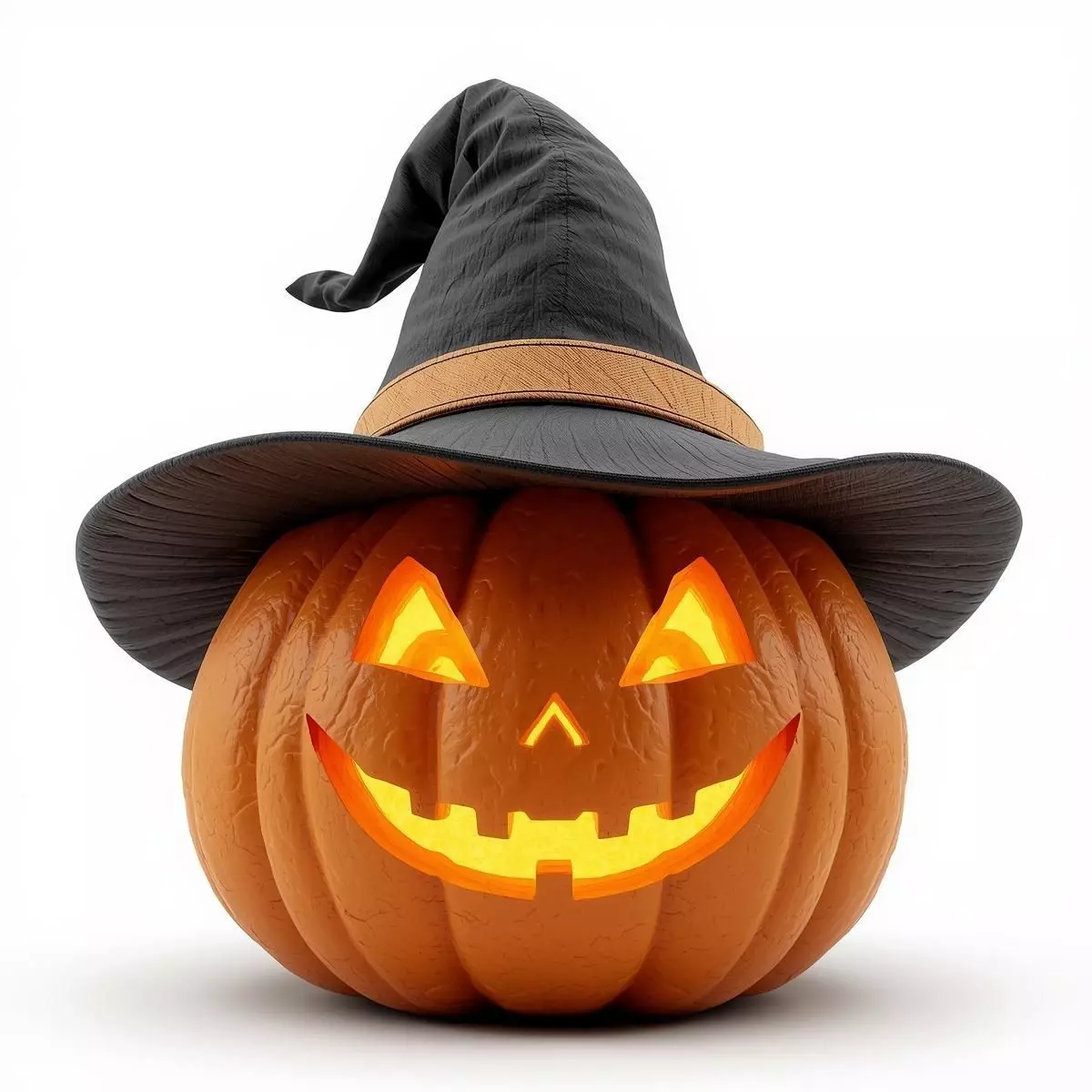 TagsJackOLantern Pumpkin Witch Hat Halloween Magic Spooky Horror Realistic Glow Orange Black Prop GameAsset Seasonal Decoration Carved Fantasy Sorcerer Eerie