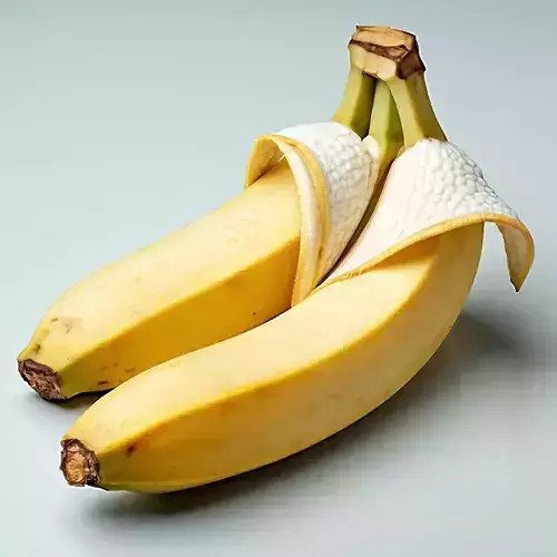 This 3D model features a pair of realistically rendered peeled bananas. Ideal for various applications, including game development, architectural visualization, advertising, and educational projects. The model is available in multiple formats (GLB, OBJ, FBX) for seamless integration into different workflows. Optimized for both real-time and offline rendering, this asset is suitable for games, AR/VR experiences, and high-quality still images. Key features include high-resolution PBR textures, clean topology, and accurate representation of a partially peeled banana pair. The bananas' vibrant yellow color and detailed peel texture contribute to a lifelike appearance. Whether you're creating a virtual fruit stand, a kitchen scene, or a health-focused animation, this model will add a touch of realism to your project. The geometry is well-optimized, balancing visual fidelity with performance. UV unwrapping allows for easy customization of the banana's appearance. This model is ready to be imported and used in your project.