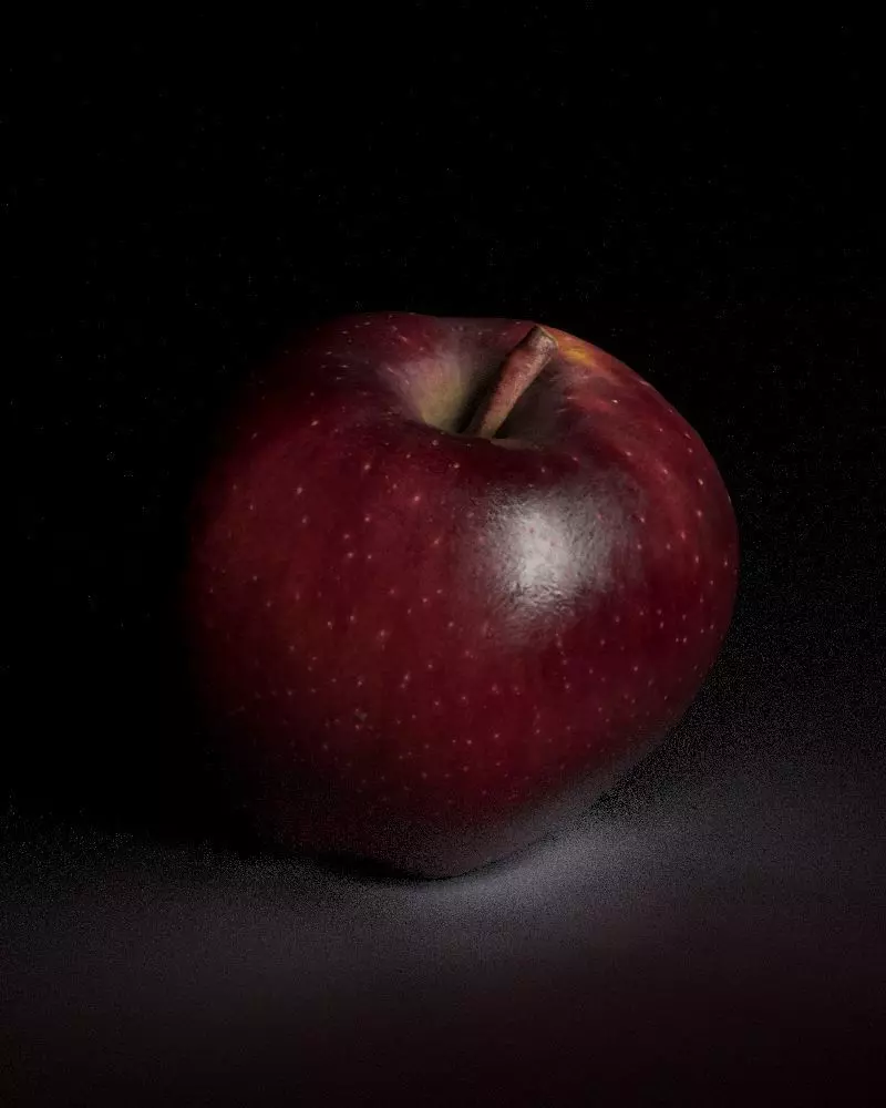 This model represents a realistic red apple, digitized from a real physical object using high-quality 3D scanning technology to achieve authentic surface detail, natural deformation, subtle imperfections, and physically believable proportions.