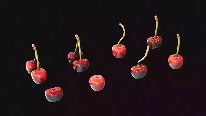 A handcrafted, stylized 3D model of a Cherry, provided as a standalone FBX file with 2048x2048 high-quality textures. This asset is ready for immediate use in any 3D software (such as Blender, Maya, or 3ds Max) or game engine (including Unreal, Unity, Godot, and more).