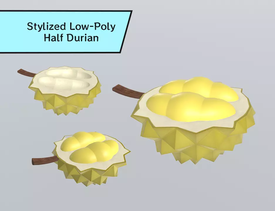Add a playful tropical touch to your stylized scenes with this low-poly half durian model. Designed with clean shapes, soft shading, and a distinct faceted outer shell, this asset fits perfectly into games, animations, stylized renders, and mobile projects.