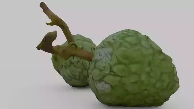 This high-resolution 3D model features two tropical fruits known as sugar apples or sweetsop, characterized by their distinctive scaly, segmented surface and natural green hue. Each fruit has a brown stem and a heart-like shape, rendered with realistic texture detailing and subtle color gradients. The plain light background enhances the organic contours and surface depth, making it ideal for use in food visualization, tropical-themed scenes, or educational content. The model emphasizes realism and natural imperfections, suitable for close-up renders and product showcases.Files : BLEND, OBJ, FBX, GLB, STL