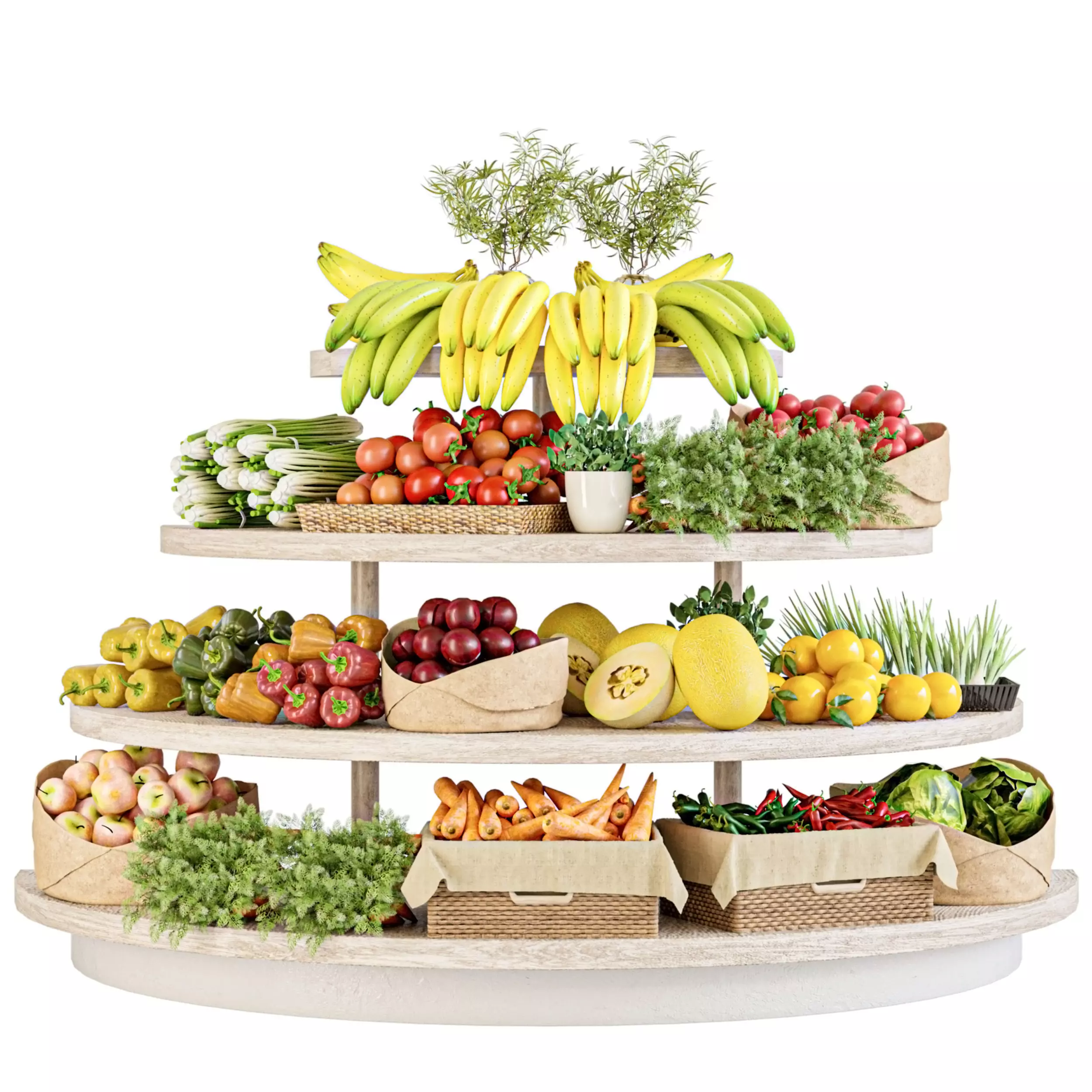 A display case in a supermarket with fruits and vegetables 3D model
