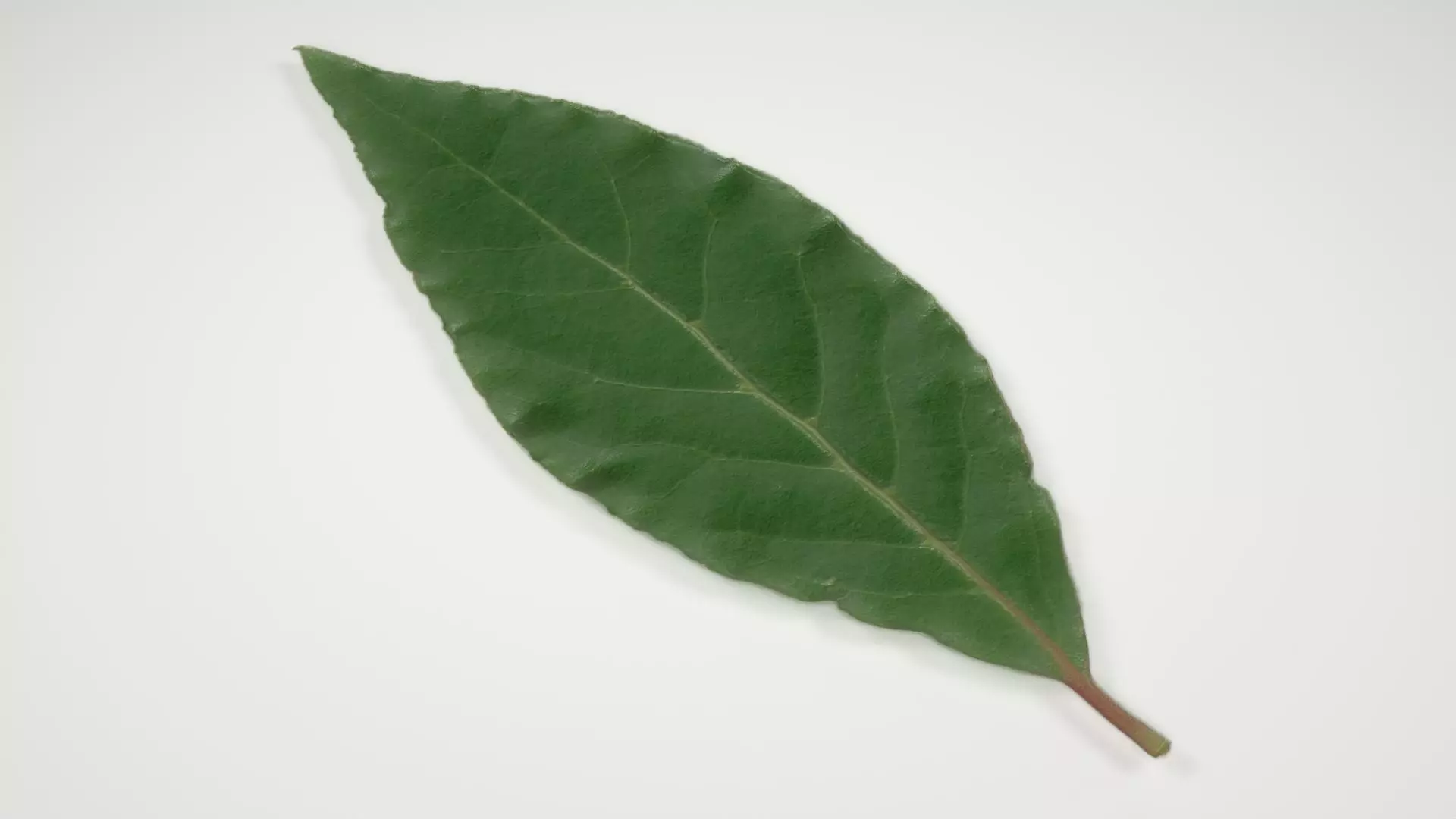 A 3D low-poly model of a Fresh Bay Leaf. V-Ray displacement mod used with a height map. The Bay Leaf has a front and back texture with a translucency map. I used VRay2SidesMtl for this. PBR metal work-flow material included.