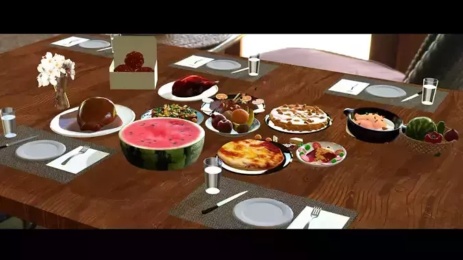 all table delicious foods------all files included. Colorful and cool FX.Ready for virtual reality, low poly games, high poly games, and other real-time apps