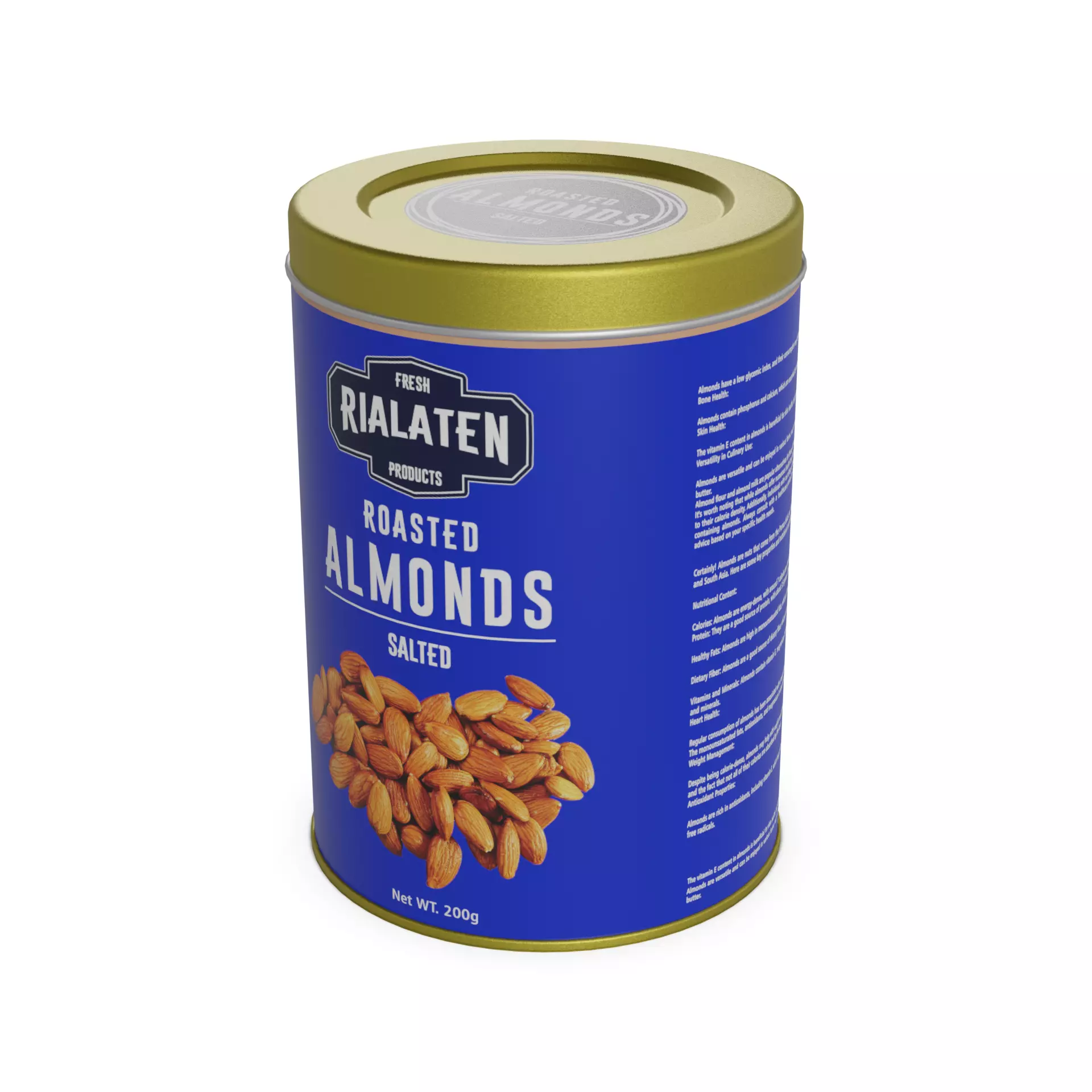 Almonds: Immerse yourself in the rich aroma of roasted salted almonds with this classic tin can. The can features a timeless design, with a deep blue color scheme and a vintage-inspired label. The label displays an image of roasted salted almonds, enticing you to open the can and savor the irresistible flavor. Inside, you'll find 200 grams of these perfectly roasted and salted almonds, packed to preserve their freshness and crunch.