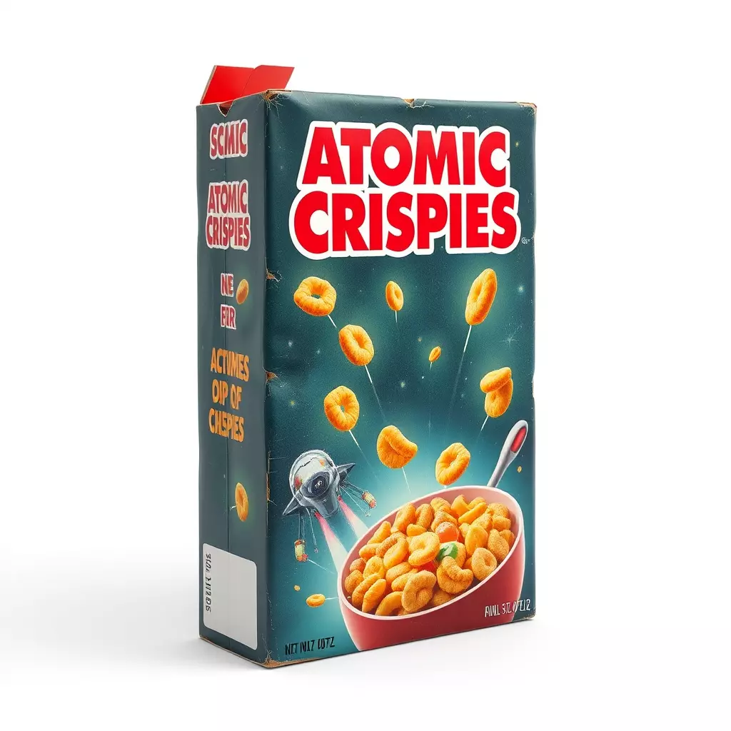 This highly detailed 3D model represents a vintage-inspired cereal box for 'Atomic Crispies', featuring a captivating retro sci-fi space theme. The design prominently displays a whimsical spaceship, numerous floating cereal pieces, and a vibrant red bowl, all set against a starry cosmic backdrop. This asset is an ideal prop for enriching a variety of digital environments, adding authentic detail to game levels and virtual reality experiences. It is perfectly suited for populating architectural visualization scenes, particularly those with a retro, modern, or slightly industrial interior design. The model serves as an excellent foreground or background element for kitchens, grocery store aisles, or futuristic household settings in film, animation, and digital art projects. Crafted with clean topology, this model is optimized for efficient rendering and smooth performance in interactive simulations and augmented reality (AR) applications. It comes fully UV unwrapped, allowing for easy application of textures and customization. Designed to support PBR (Physically Based Rendering) workflows, it guarantees realistic material interactions and visual fidelity under diverse lighting conditions. The model can be seamlessly integrated into popular game engines such as Unity and Unreal Engine, as well as various rendering software for high-quality static images. Supported file formats typically include GLB, OBJ, FBX, USD, and DAE, ensuring broad compatibility across major 3D software and platforms. The distinctive stylized art direction, with its nostalgic appeal and slight wear details, makes it a unique addition to any asset library. Whether you are building a quirky indie game, a realistic interior render, or a fun animated short, this Atomic Crispies cereal box adds a unique touch of charm and character. Its detailed design and robust optimization make it a versatile asset for both real-time and offline rendering needs.