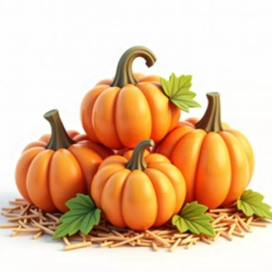 TagsPumpkin Autumn Fall Harvest Seasonal Prop GameAsset Decoration Thanksgiving Orange Straw Hay Leaves Vegetable Gourd Cluster Stylized Farm Outdoor TableDecor