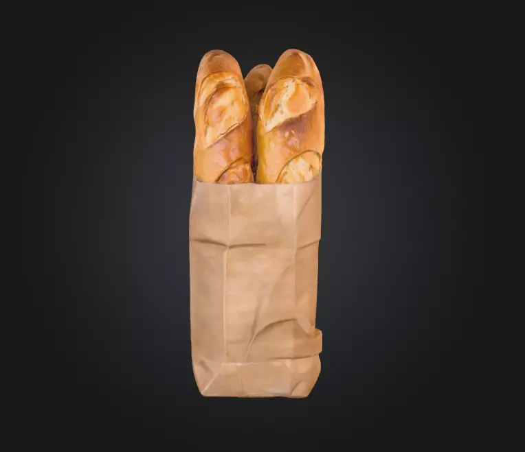 Ideal for food-themed visualizations, café or bakery interiors, restaurant menus, or lifestyle renders, this model blends aesthetic appeal with practical versatility. In gaming or cinematic projects, it can become a prop for kitchen scenes, a market stall decoration, or a still-life element in storytelling cutscenes. Its PBR textures ensure that every detail—from the soft matte paper to the crusty bread surface—responds realistically to lighting, making it suitable for close-up shots or immersive VR environments.