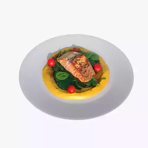 Baked Fish With Lemon Cream Sauce Low-poly 3D model