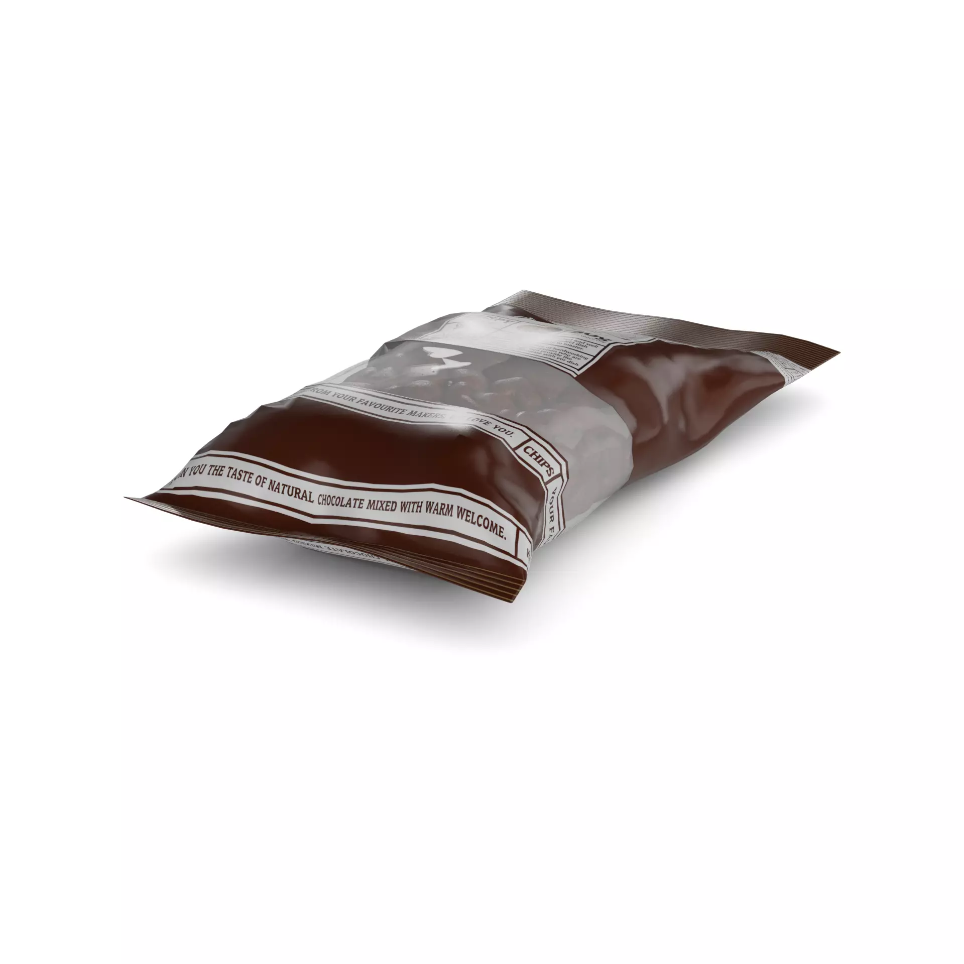 Chocolate Chips: Indulge in the rich, creamy taste of these chocolate chips. Packaged in a resealable plastic bag, the chips come in a variety of sizes, from mini to jumbo. The bag features a label with a picture of chocolate chips and the text Chocolate Chips in bold, chocolate-colored font. The packaging also includes a recipe for chocolate chip cookies, making it easy to whip up a batch of delicious treats.