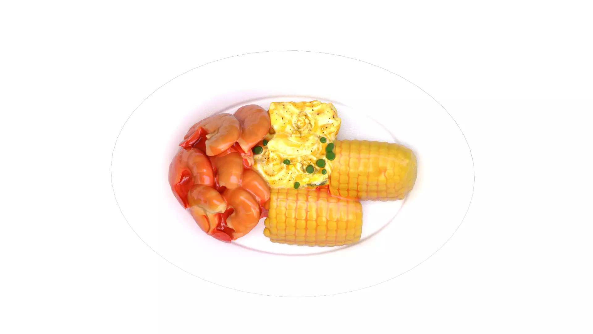 Boiled Shrimp and Corn Meal Low-poly 3D model