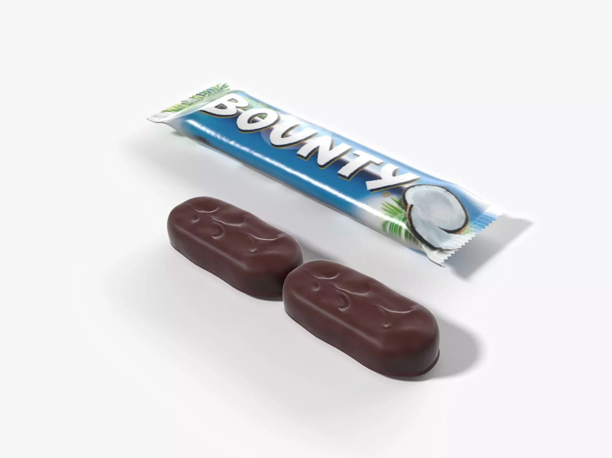Bounty chocolatehigh quality model with just the right amount of polygons to make it look soft. Ready to be subpatched, made from solid parts, after simple mesh automatic repair or boolean operations it can be 3D printed.