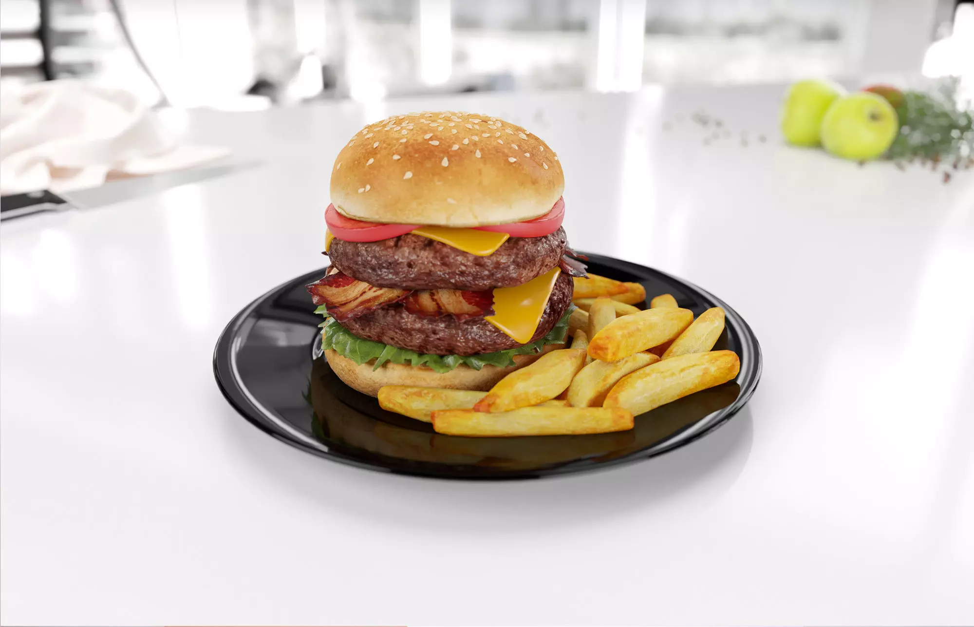 This model includes the big double burger with french fries. The model has high quality shaders so even simple objects look great and detailed. Model prepared for 3d architectural visualisations and other graphic works. We provide high quality work fit for both professionals and hobbyist to speed up their workflow and get great results.