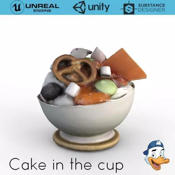 This high-quality model of Cake in the cup can be used for games and archviz.