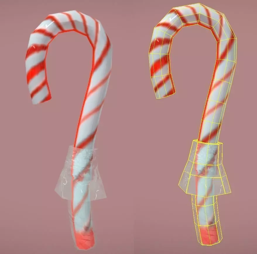 Candycane Lowpoly with wrapper Low-poly 3D model
