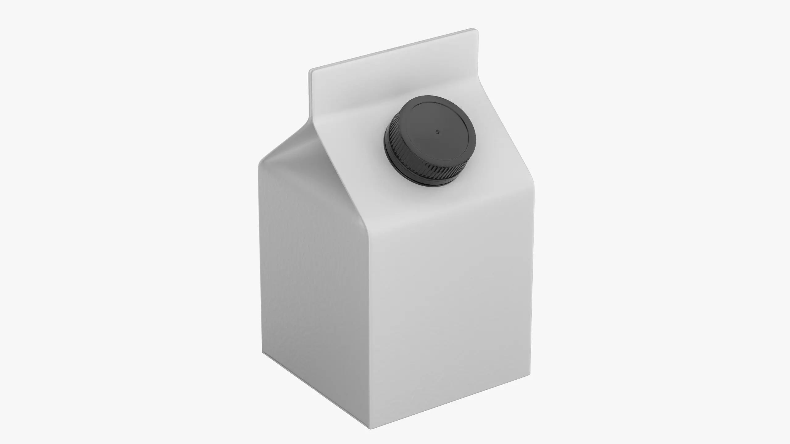 Realistic carton drink box mockup designed for beverages and liquid food packaging. Suitable for milk, juice, plant-based drinks, smoothies, cream, yogurt drinks, and functional beverages. Classic carton box shape with folded top, screw cap, and clean paperboard surface. Accurate proportions and realistic shading make this mockup ideal for branding, label design, and retail packaging presentations.