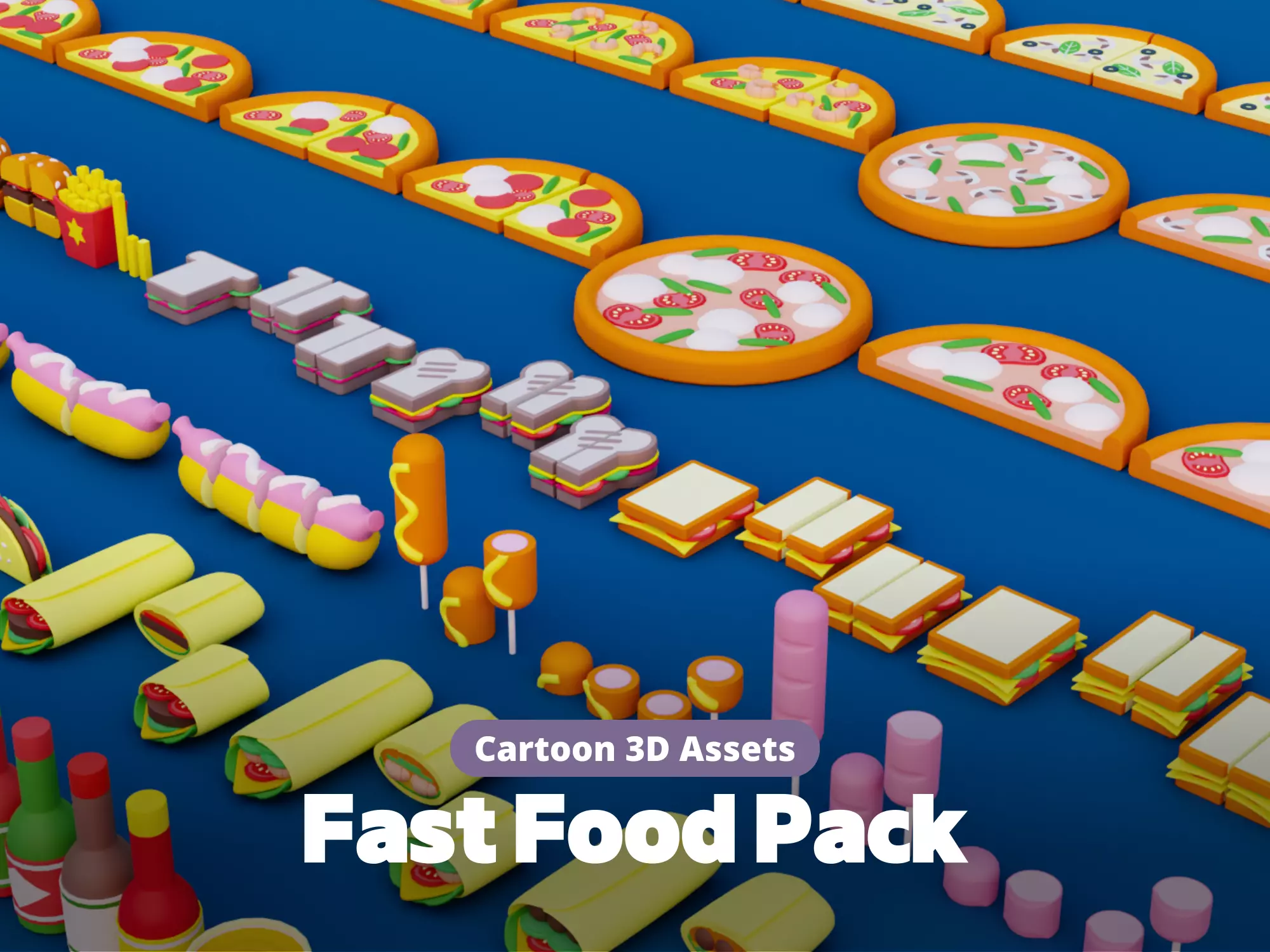 => Each fast food item is provided in whole, half, and sliced versions – making them ideal for interactive systems like cooking, serving, crafting, and animated cutscenes.