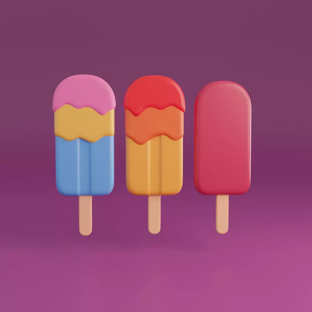Cartoon popsicle icecreamPoly count:Yellow-Orange-red: Faces: 542Vertices: 550