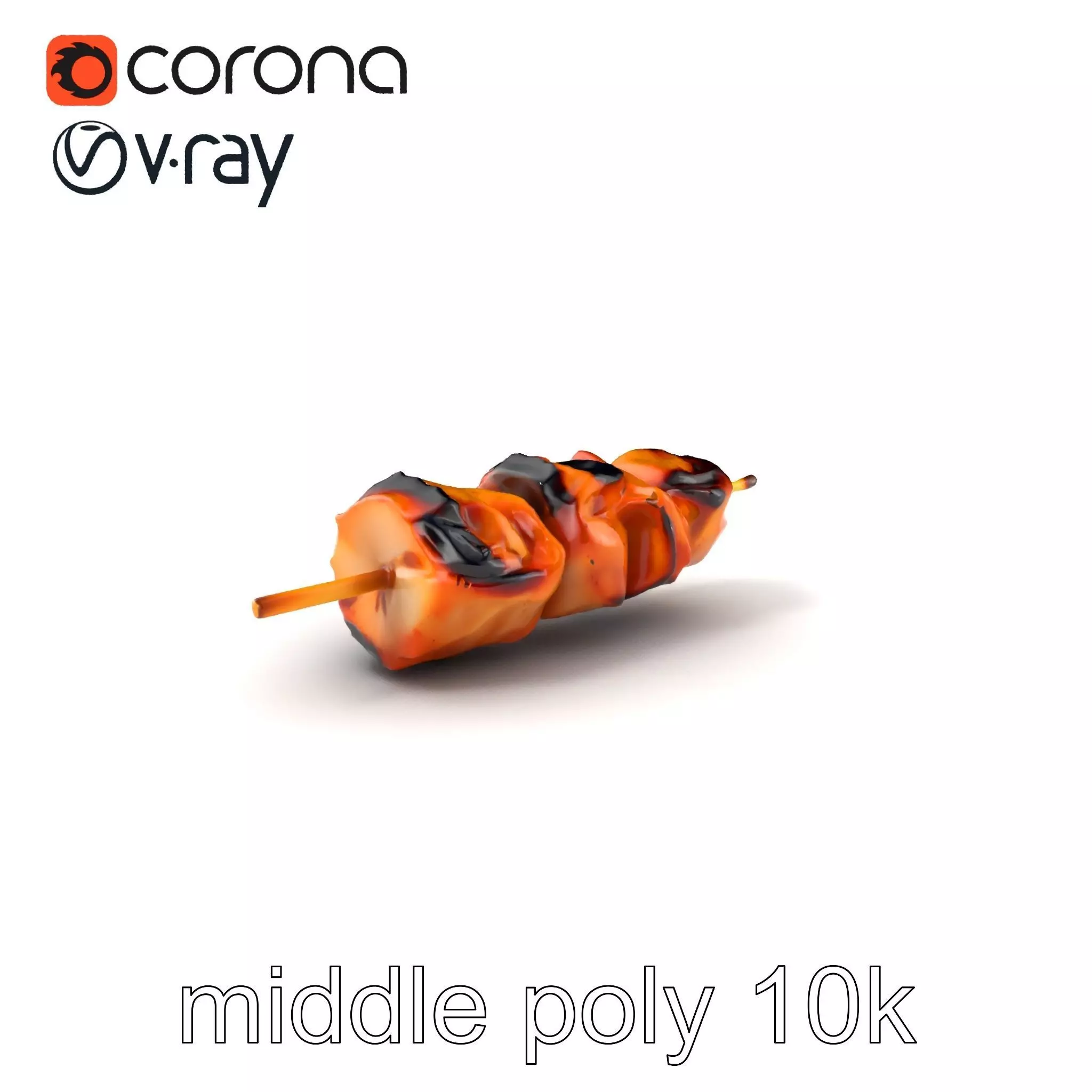 The model features realistic marbled chunks and fat streaks on the pork with a wooden stick and offers a juicy appearance with brownish and pinkish meat hues. Ideal for enhancing your virtual barbeque scenes or cooking simulations.