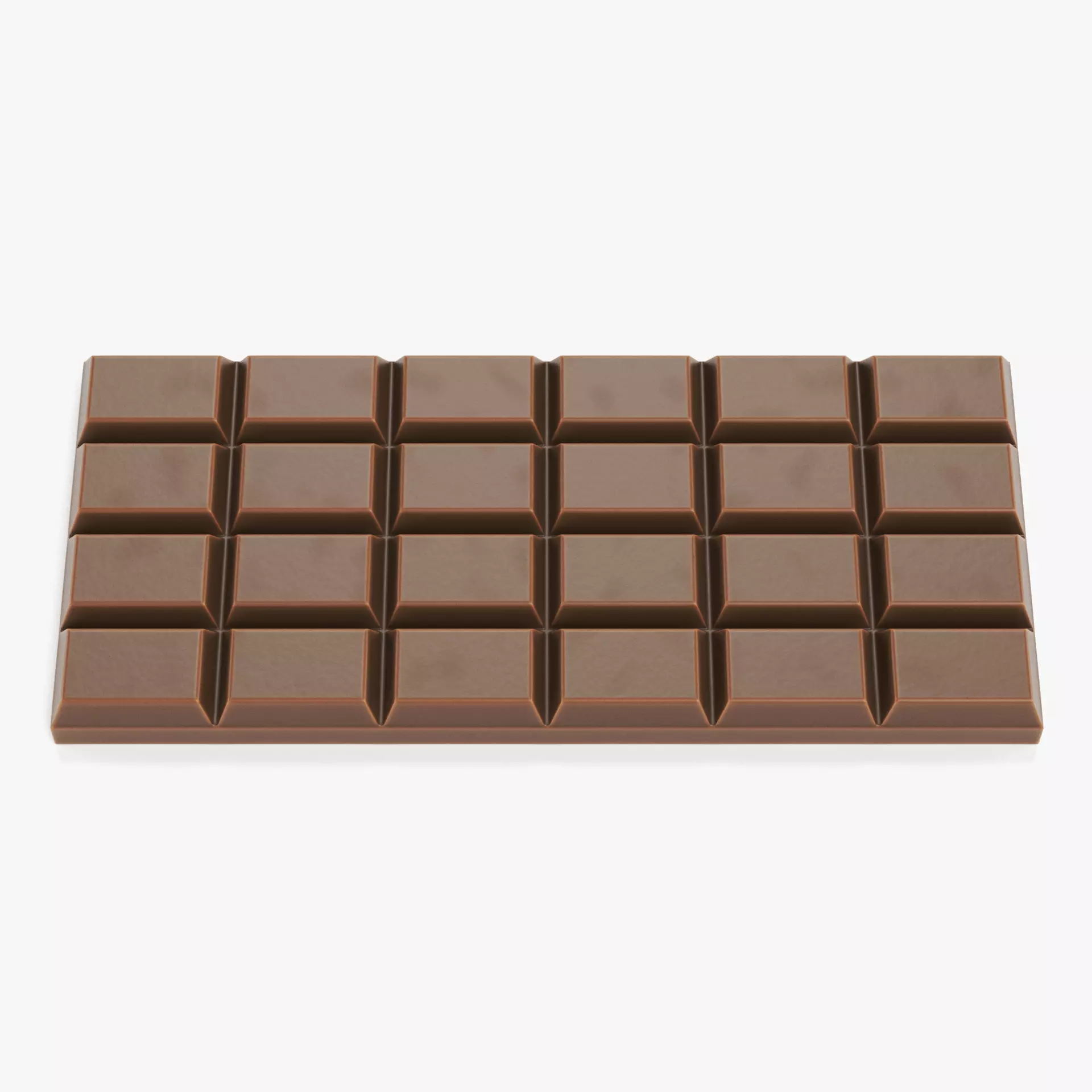 A milk chocolate bar designed with a segmented block structure and a noticeably thicker profile. The clean grid layout keeps the form structured and easy to read. Subtle beveling softens transitions between segments and supports natural highlights across the chocolate surface. The unwrapped format allows flexible placement across dessert scenes, confectionery setups, and food visualization.
