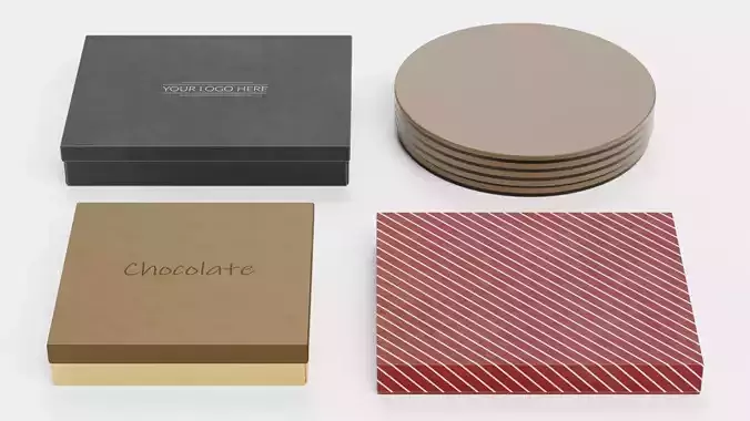 • 4 Chocolate Boxes Collection - Plain Unbranded Packaging Set 3D model