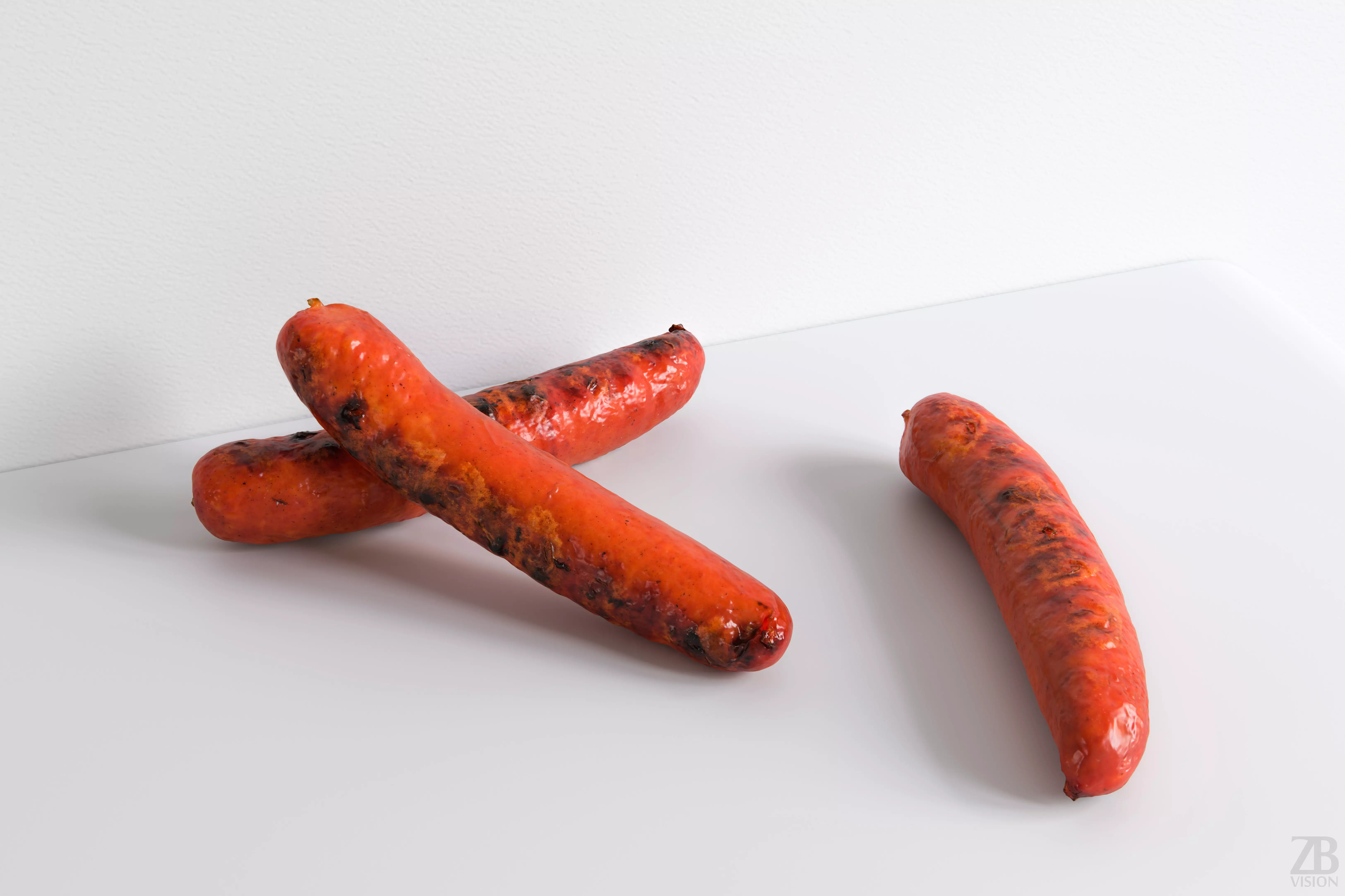This is a 3d model of a grilled chorizo sausage. It was scanned and prepared for photorealistic renderings, close-ups, stills and animation. The chorizo sausage model is ready to be inserted in your scene out of the box.