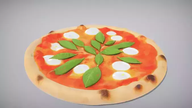 This model represents a classic Margherita pizza, featuring a golden crust, rich tomato sauce, and fresh mozzarella. Each model has 3 levels of detail with QUAD polygons: