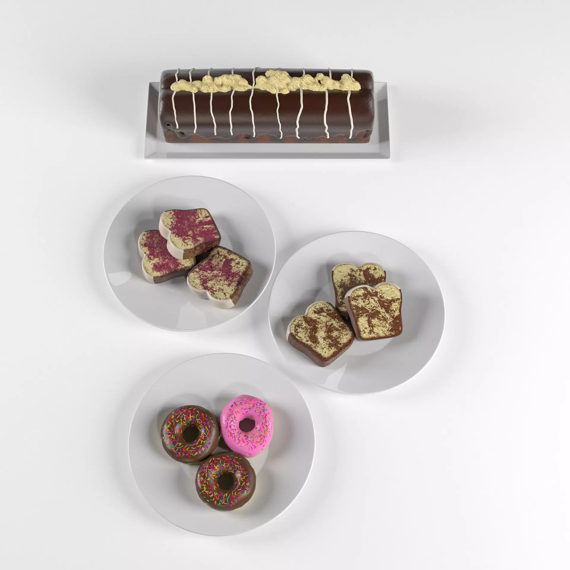 The model has material settings that define how surfaces look (color, shine, transparency, etc.).