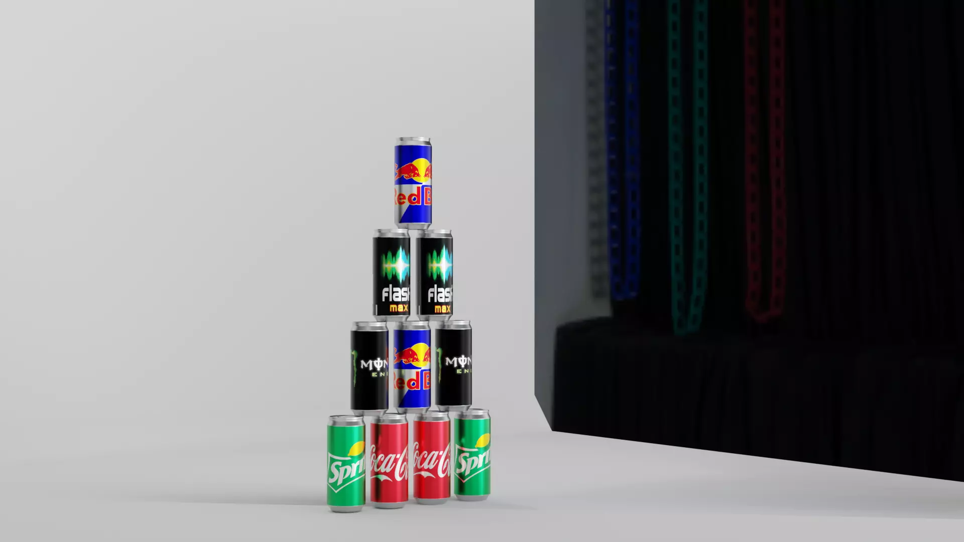 The model has material settings that define how surfaces look (color, shine, transparency, etc.).