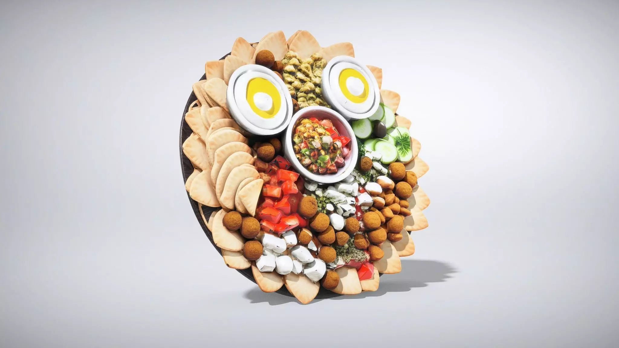 This detailed mezze platter model showcases a vibrant arrangement of Middle Eastern delicacies, perfect for culinary presentations or restaurant environments. Each component is meticulously crafted to reflect realistic textures and colors, making it ideal for both high-quality renders and interactive applications. Each model has 3 levels of detail with QUAD polygons: