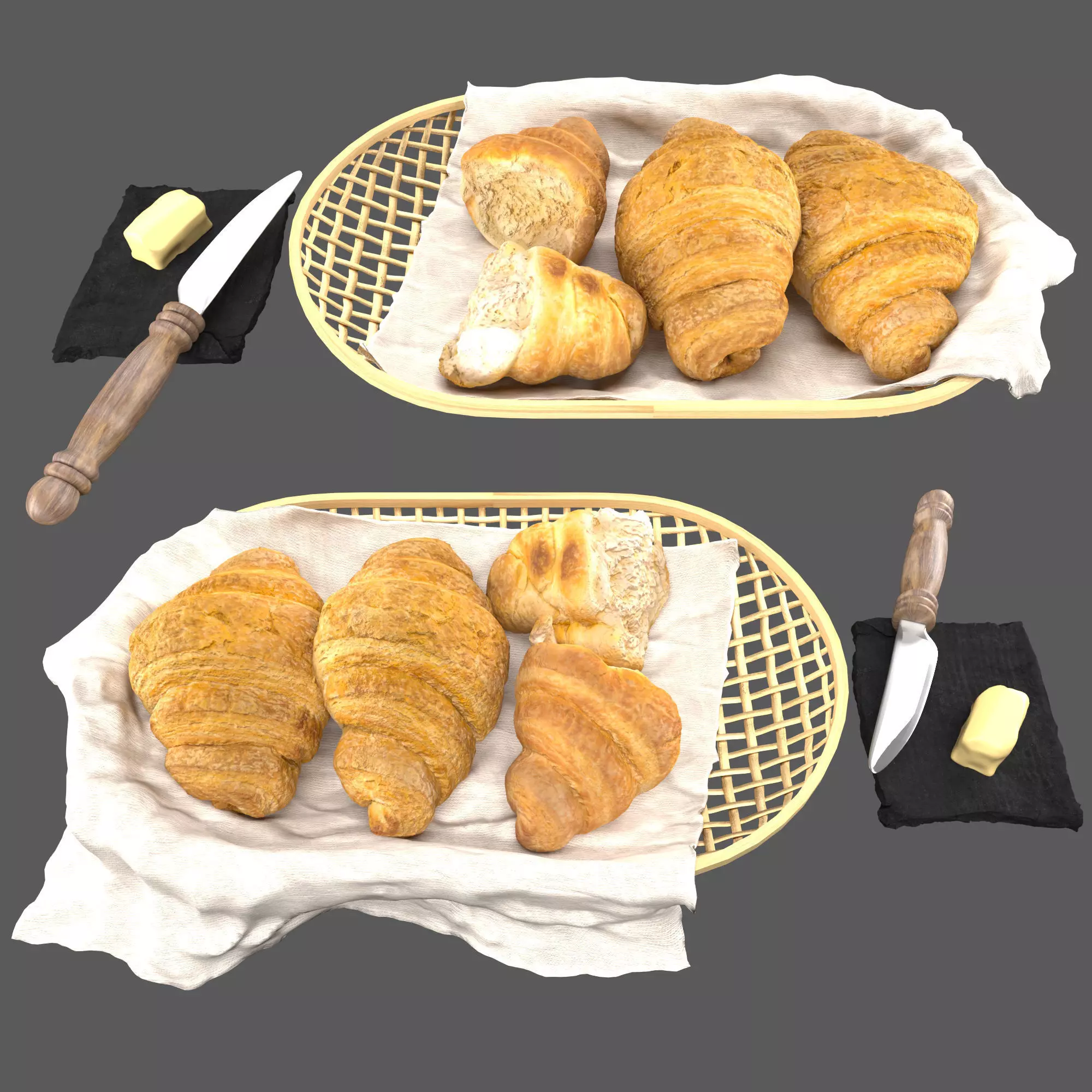 Croissant in Klyfta basket, Bread basket, bamboo, butter and black stone plate