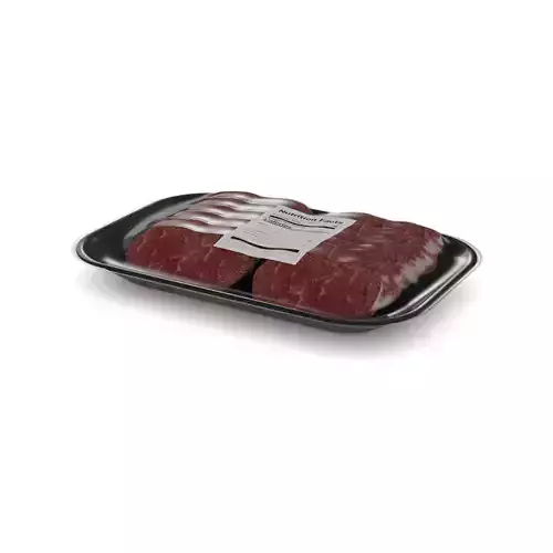 Roast Beef: Delicious slices of roast beef, ideal for sandwiches or as a main course. The slices are neatly arranged in a rectangular plastic tray, covered with a clear plastic film. The packaging features a classic black and white color scheme, with a picture of the roast beef on the front. The label includes the product name, weight, and serving suggestions.