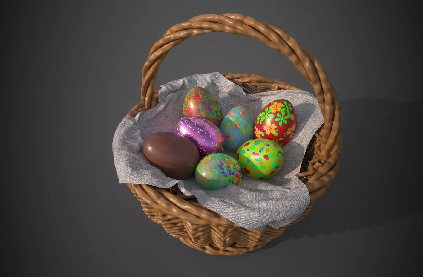 Easter basket with eggs, modeled in Blender, all texture ready and, suitable for any environment.I'm including standard textures with unreal textures as well. file Obj and Fbx.