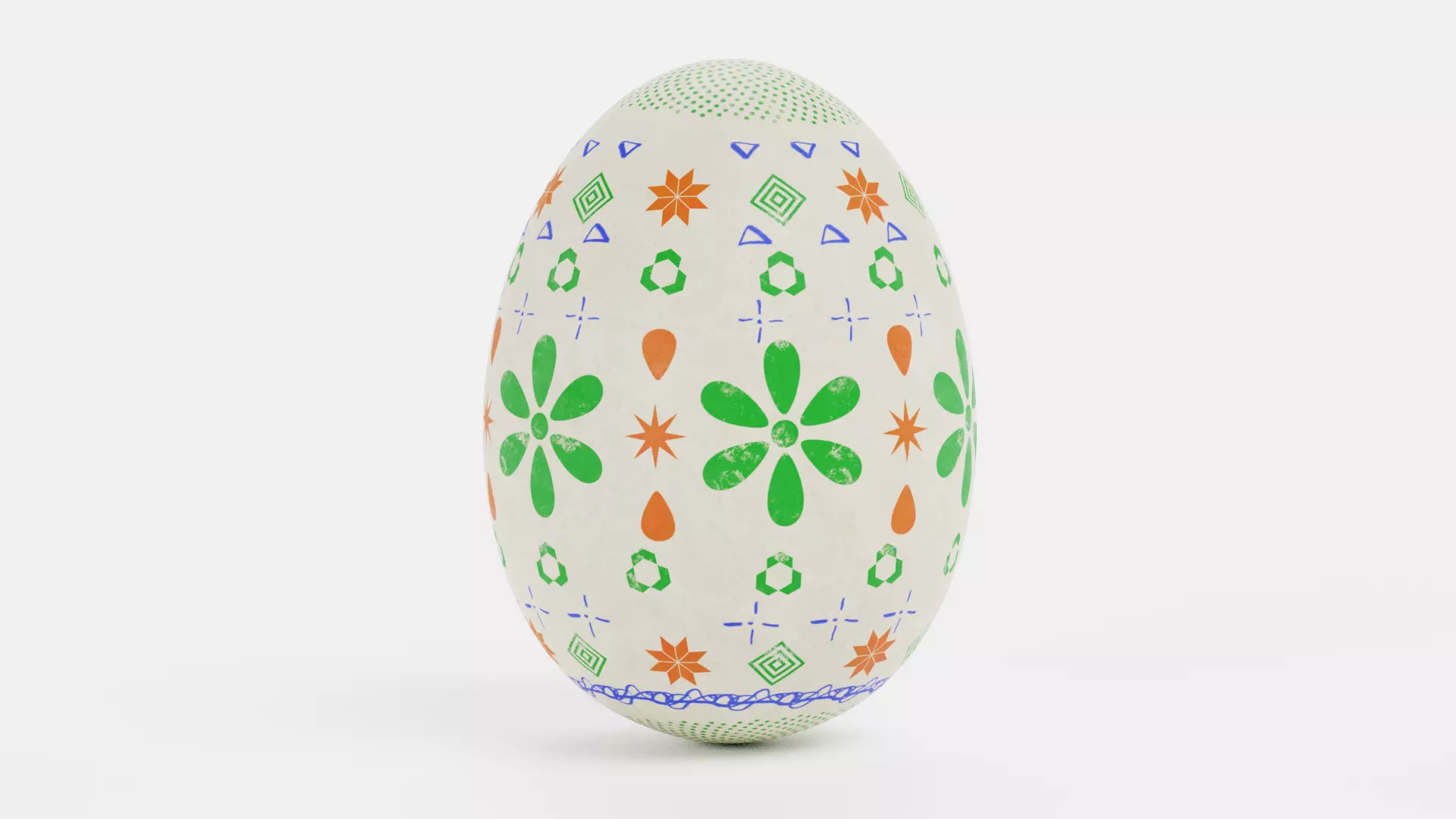 Realistic Easter egg designed as a decorative spring asset with a focus on varied ornamental detailing and a clean, well-balanced form. The white base is combined with a mix of soft, multicolor patterns that introduce a light, playful character. Suitable for Easter decorations, spring-themed scenes, holiday setups, seasonal product renders, or festive interior compositions.