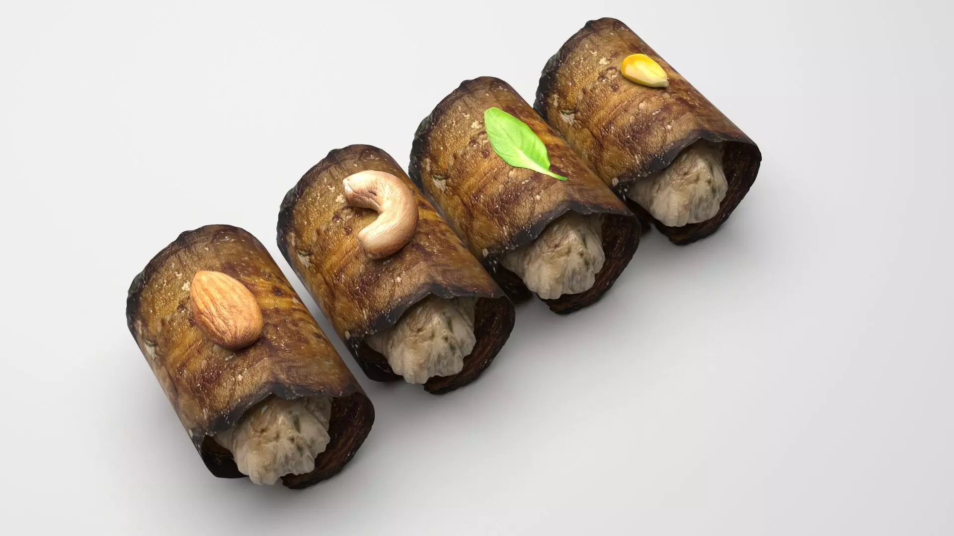 Eggplant Rolls is made from walnut, eggplant, eggplant roll mixture and pomegranate. For vegetable cooking, restaurant menu equipment, recipe books, pub kitchen menus, botany science, supermarket advertisements, dietary tips, cooking show, supermarket vegetable retailing, recipe articles, supermarket delivery, supermarket products, food storage, grocery supply, diet food, and fruit market projects. Fried Eggplant is a high quality, photo real 3d model that will enhance detail and realism to any of your rendering projects. The model has a fully textured, detailed design that allows for close-up renders, and was originally modeled in 3ds Max 2022 and rendered with V-Ray. Renders have no postprocessing! Hope you like it!