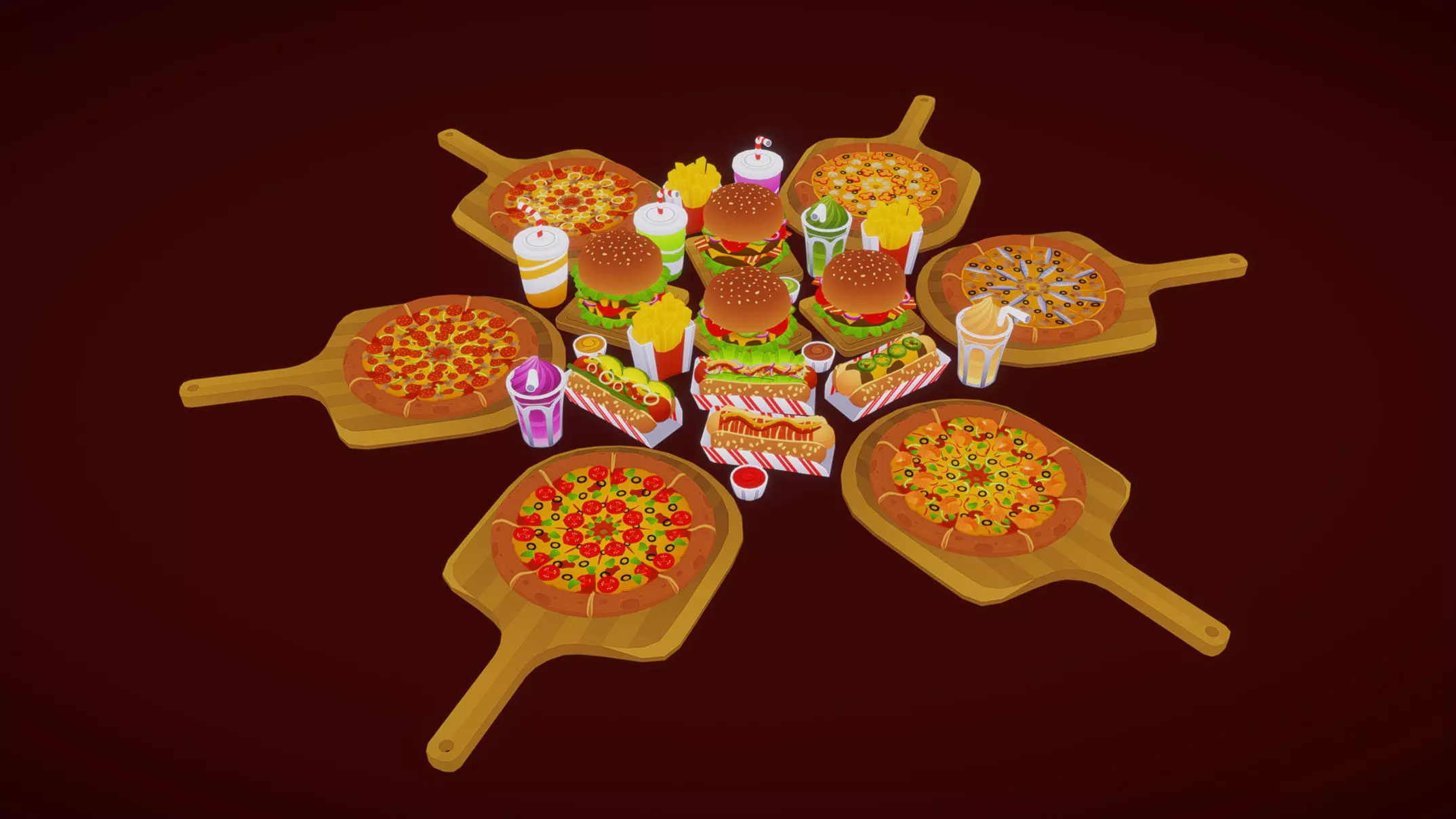 Fast Food Pack Low-poly 3D model