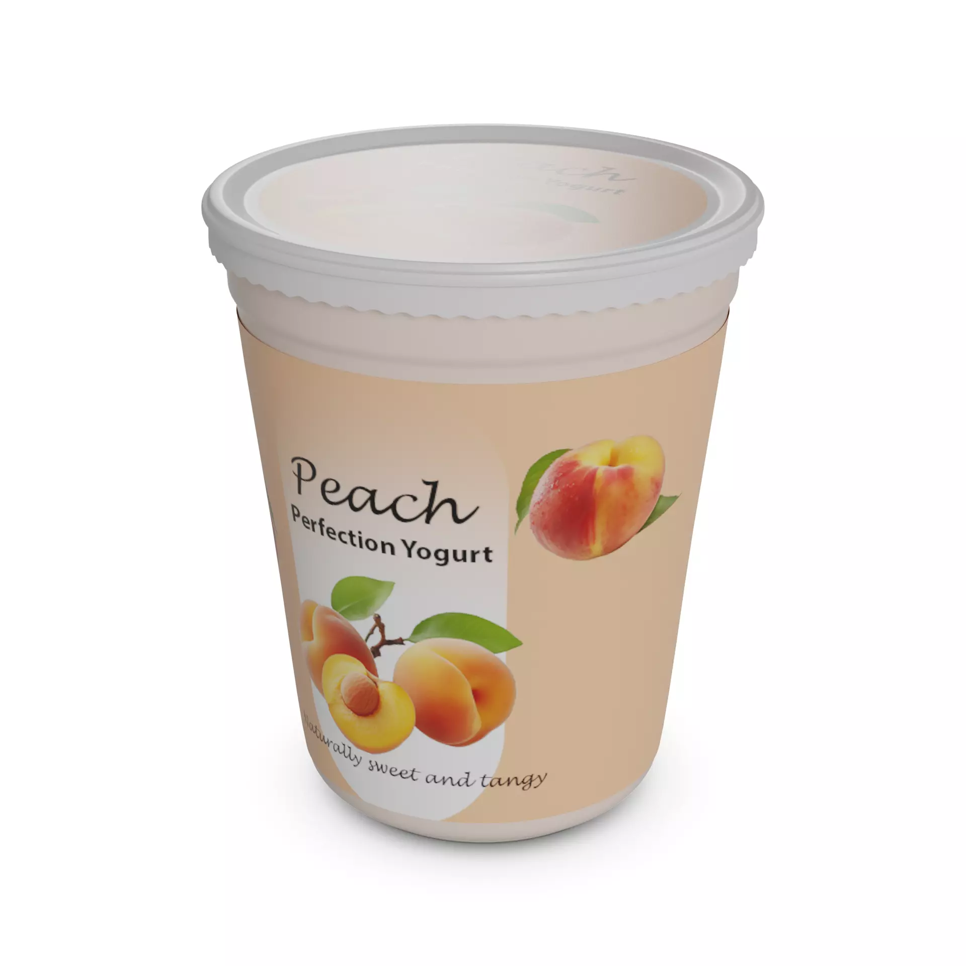 Peach Perfection: Delight in the juicy goodness of our Peach Perfection flavored yoghurt. Packaged in a soft orange container, this yoghurt is made with ripe peaches, resulting in a delightful peachy color. The container features a label with a picture of a sliced peach and the text Naturally sweet and tangy. Enjoy the smooth and creamy texture, coupled with the sweet and refreshing taste of peaches.