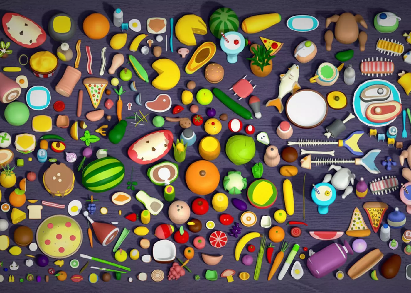 • Cute, simple 313 Low Poly food Models with a colorful, cartoon style.