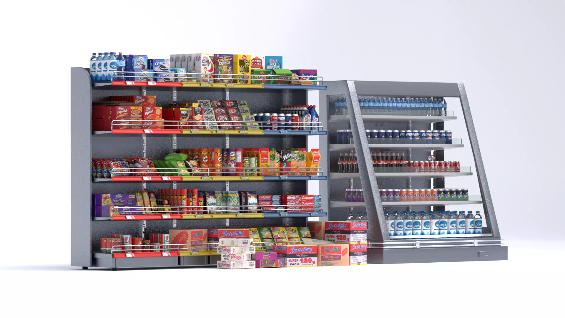 The model has material settings that define how surfaces look (color, shine, transparency, etc.).