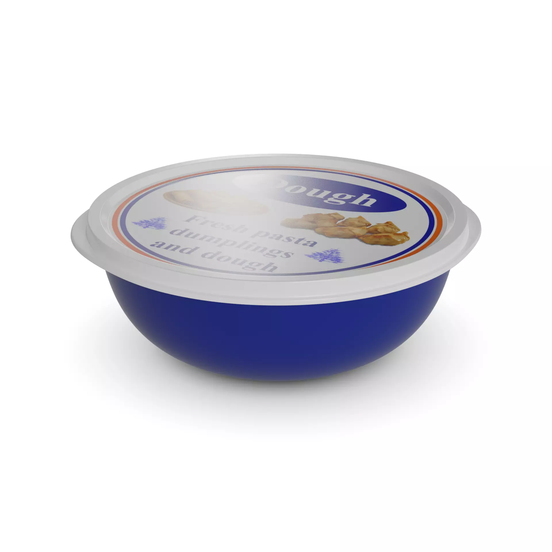 Dough: Get ready to bake with this convenient dough. The packaging is a colorful, plastic tub, making it easy to store and use. The label on the packaging showcases a graphic of a rolling pin and various baked goods that can be made with the dough, along with the text Dough in a playful, handwritten font.