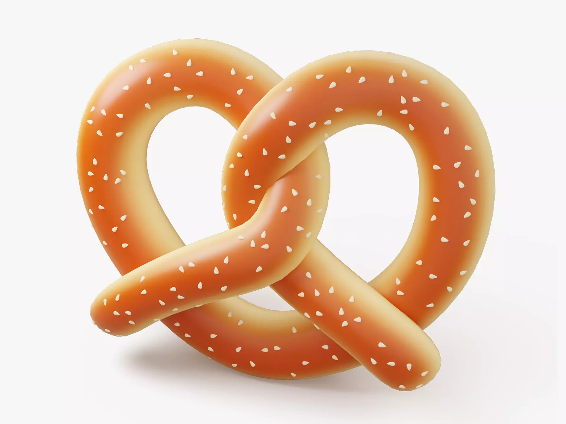 A stylized 3D pretzel icon with a glossy, golden-brown crust and sprinkled with coarse salt. This soft, twisted pastry has a clean, cartoonish look, making it ideal for bakery-themed visuals, game UI, food apps, and cute icon packs. The soft shading and playful form give it a charming and modern appeal.