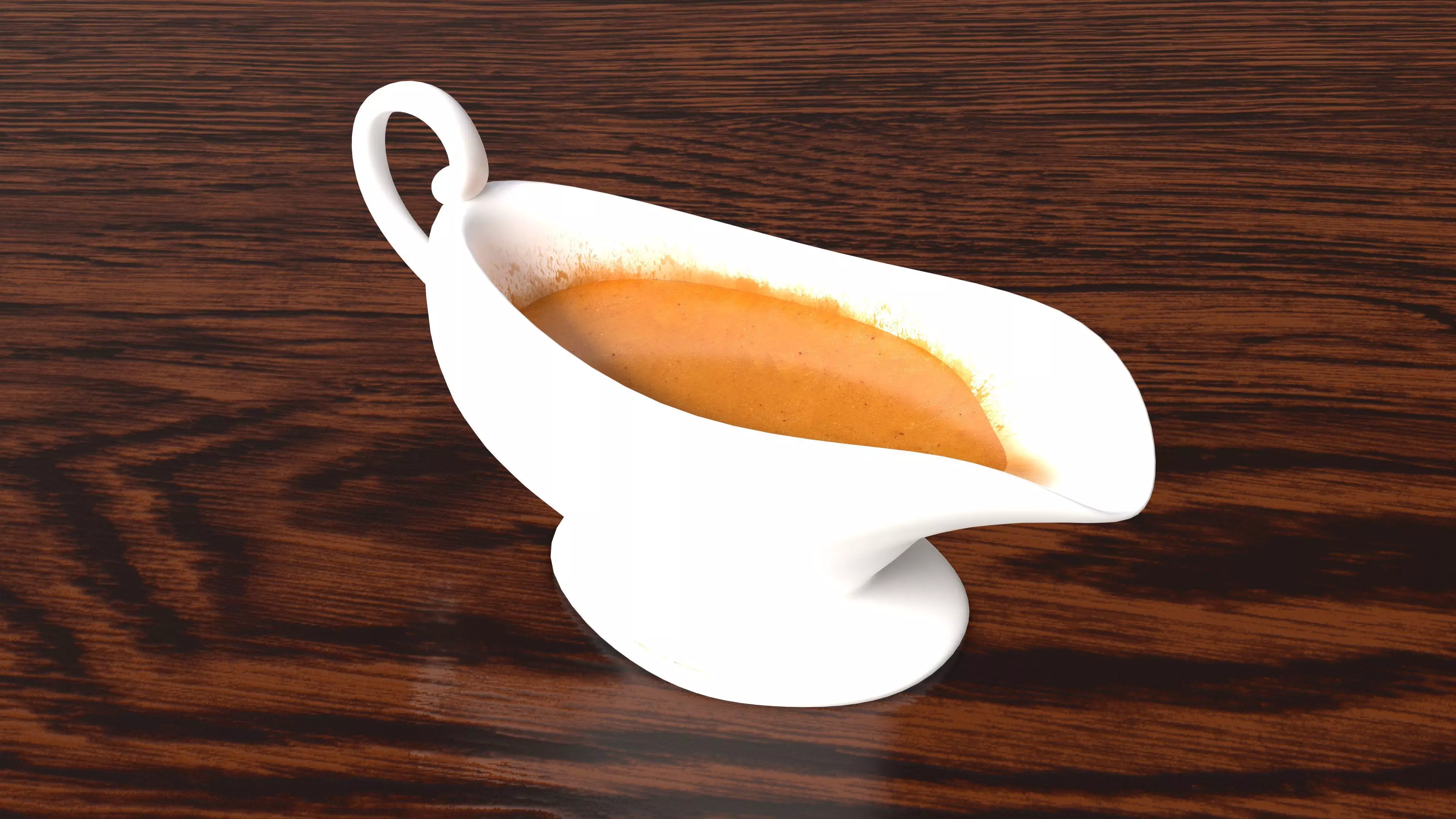 gravy sauce pitcher on wooden table Low-poly 3D model