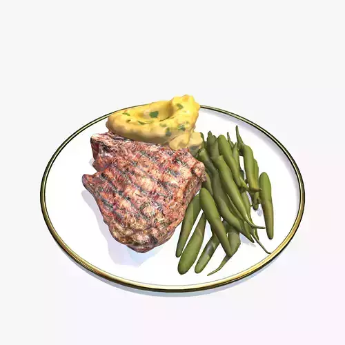 Grilled Steak with Mashed Potatoes Green BeansIndulge in the ultimate dining experience with this meticulously detailed 3D model of a Grilled Steak with Mashed Potatoes and Green Beans. Perfect for culinary visualizations, food-related advertisements, and virtual restaurant menus, this high-quality model showcases the savory textures and rich colors of a perfectly grilled steak, complemented by creamy mashed potatoes and crisp green beans. Every element is crafted to perfection, ensuring an appetizing and realistic representation that will leave viewers craving for more.Files_ 3dsmax(2020),FBXOBJColladaTextures PBR 8192x8192 PNG