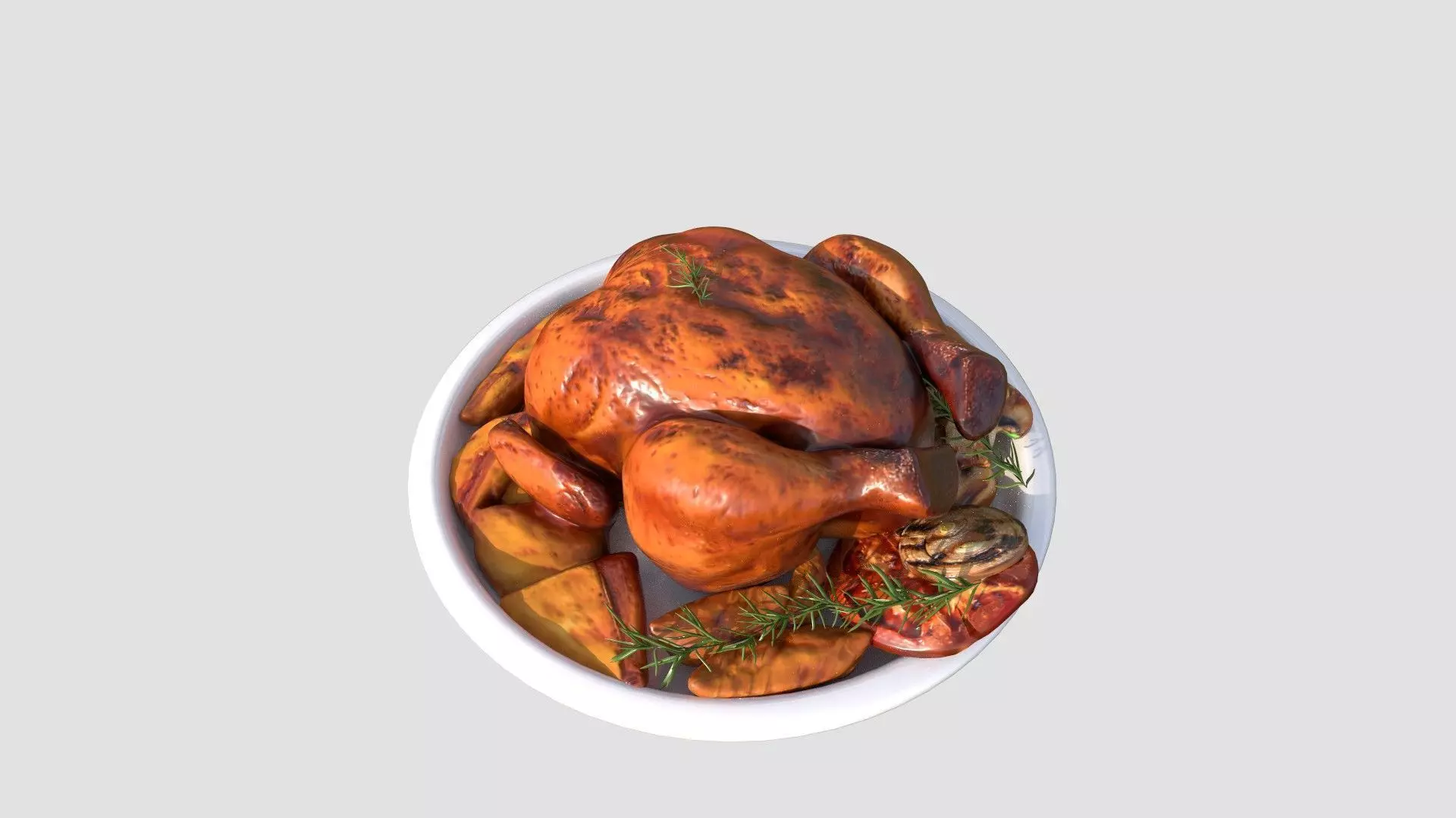 Grilled Roasted Whole Chicken Low-poly 3D model